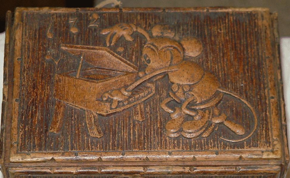 | Life-like reproductions of the world-famous Mickey Mouse in characteristic poses adorn the genuine Syrocowood cabinet... |