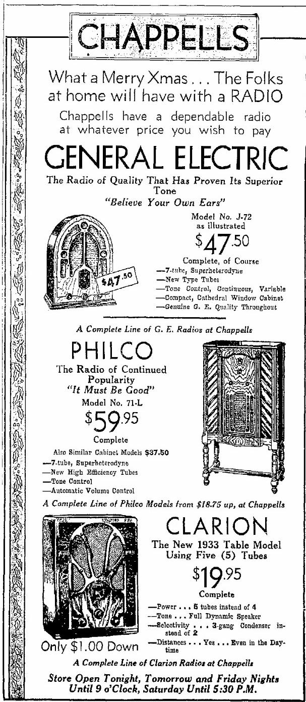 from 525 - 1550kc and uses an ac-powered 7 tube super-