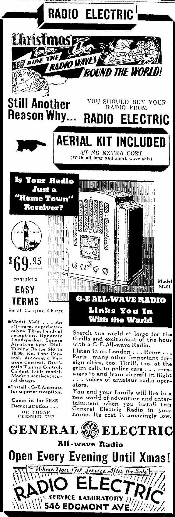 GE's all-wave model M-61 (M61) semi-cathedral cab-