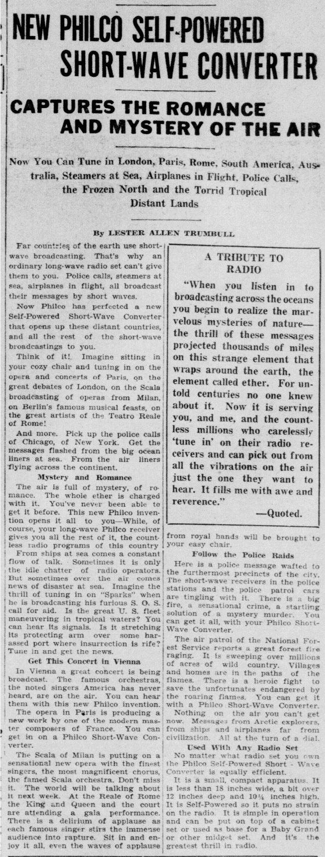 Life! Thrills! Action! Get all the Drama of the Radio World with Philco Shortwave Converter!