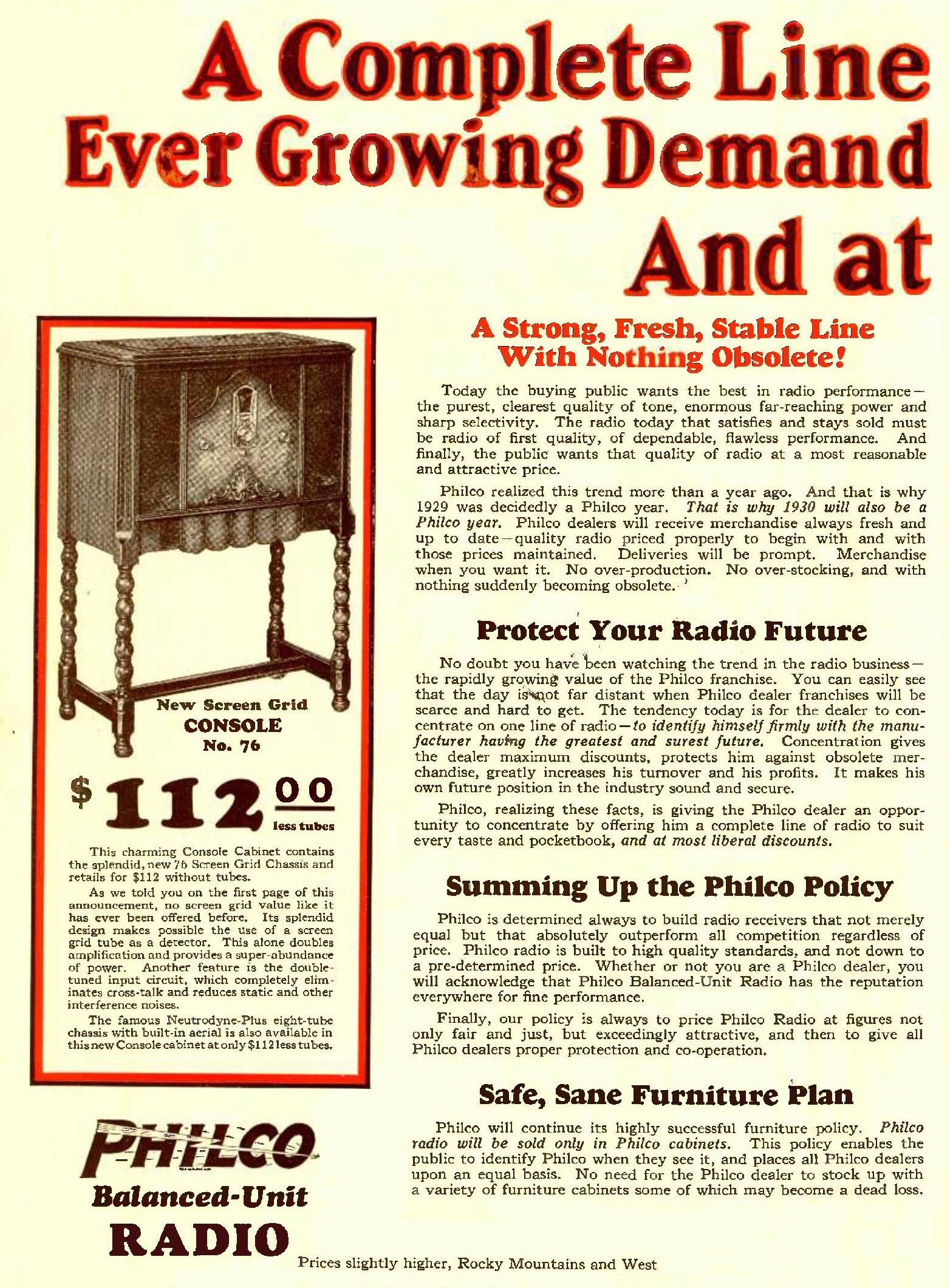 ous Philco ads featured their 8-tube neutrodyne-plus, 6-tube