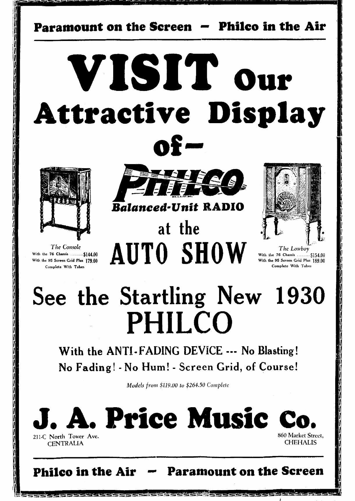 Ad clipping from Jan 1930.