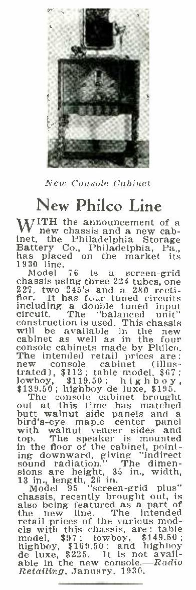 Philco Model 76 "Console" Radio (Jan 1930)