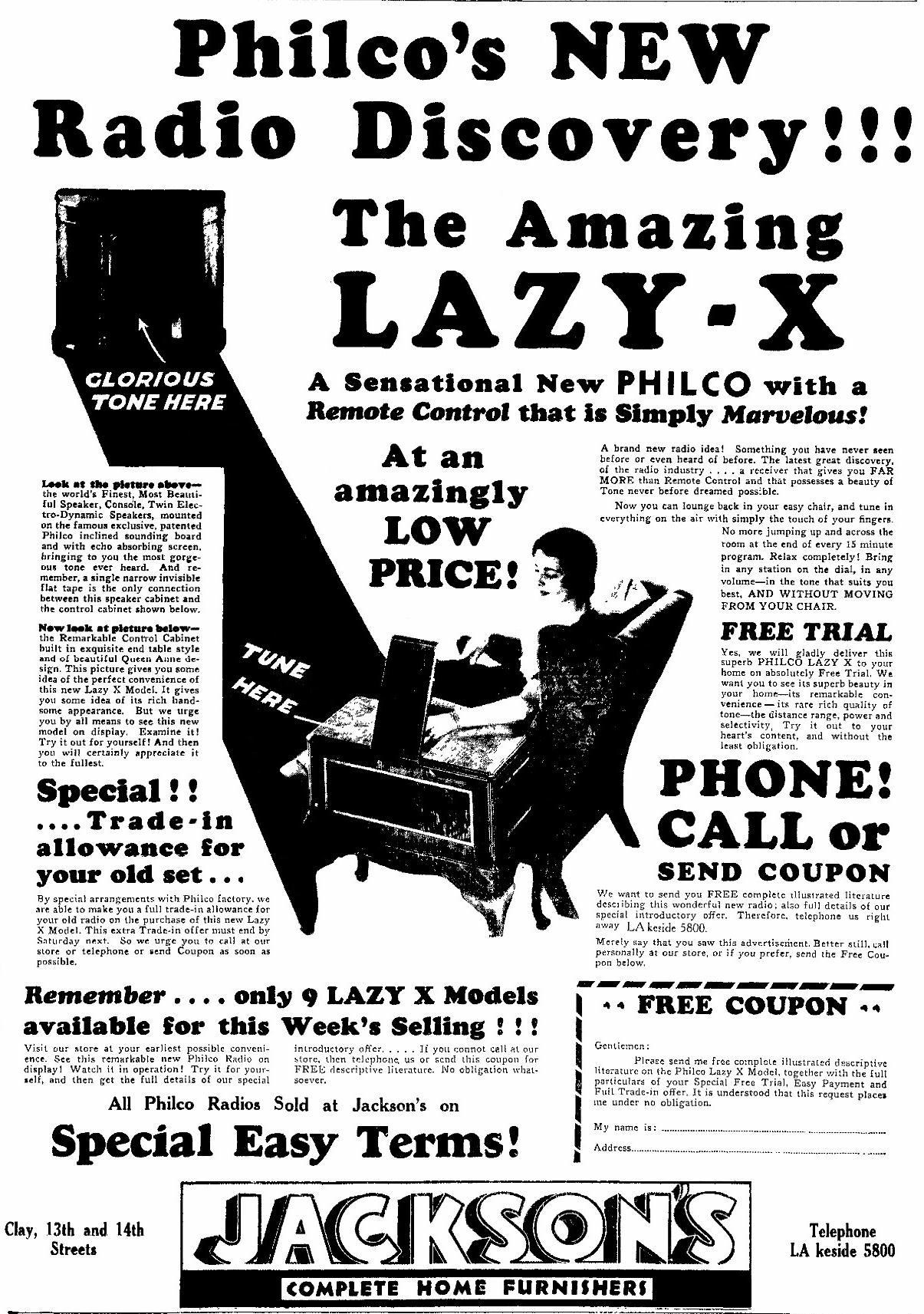Jan of 1933 as one of Philco's new series of "Lazyboy"